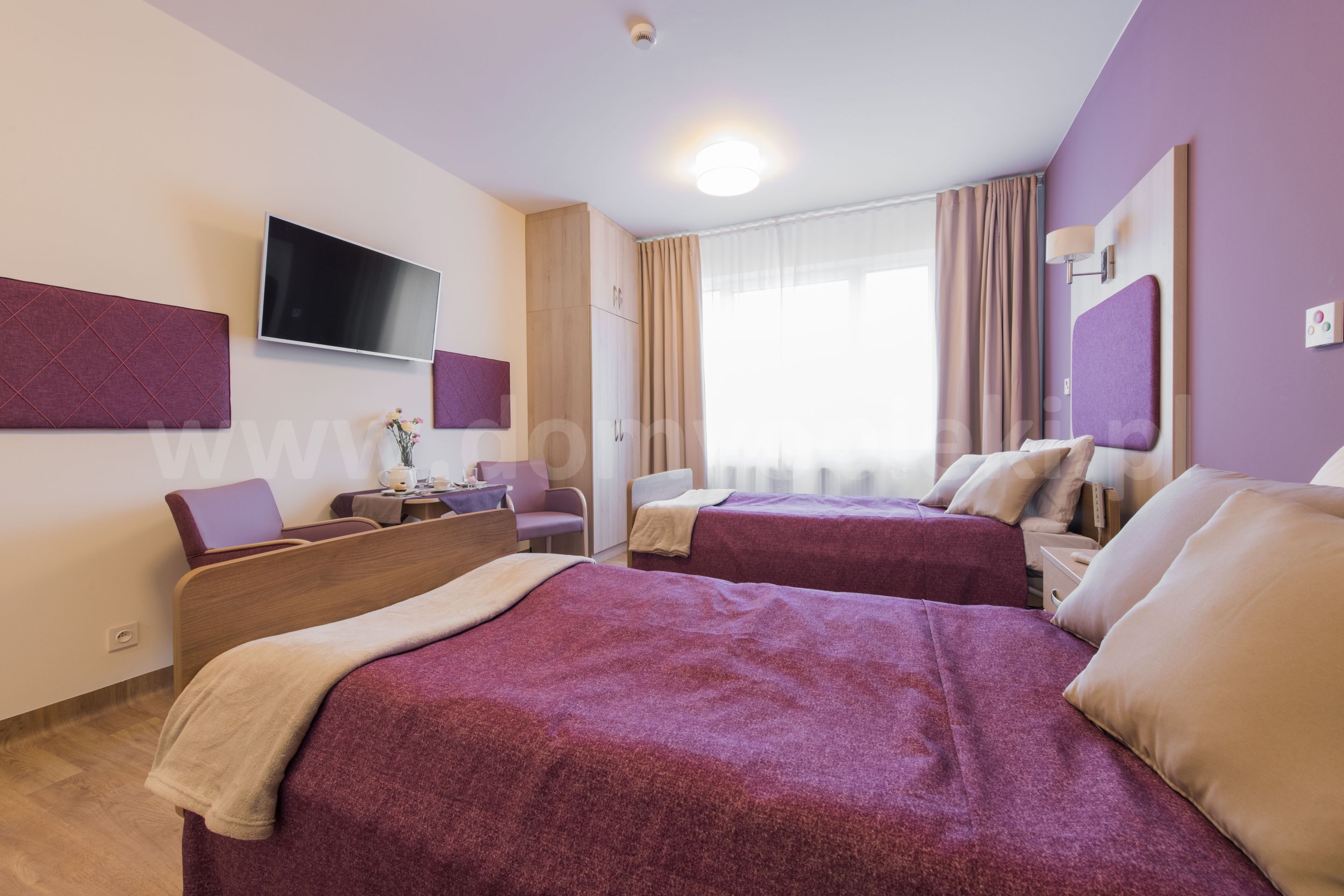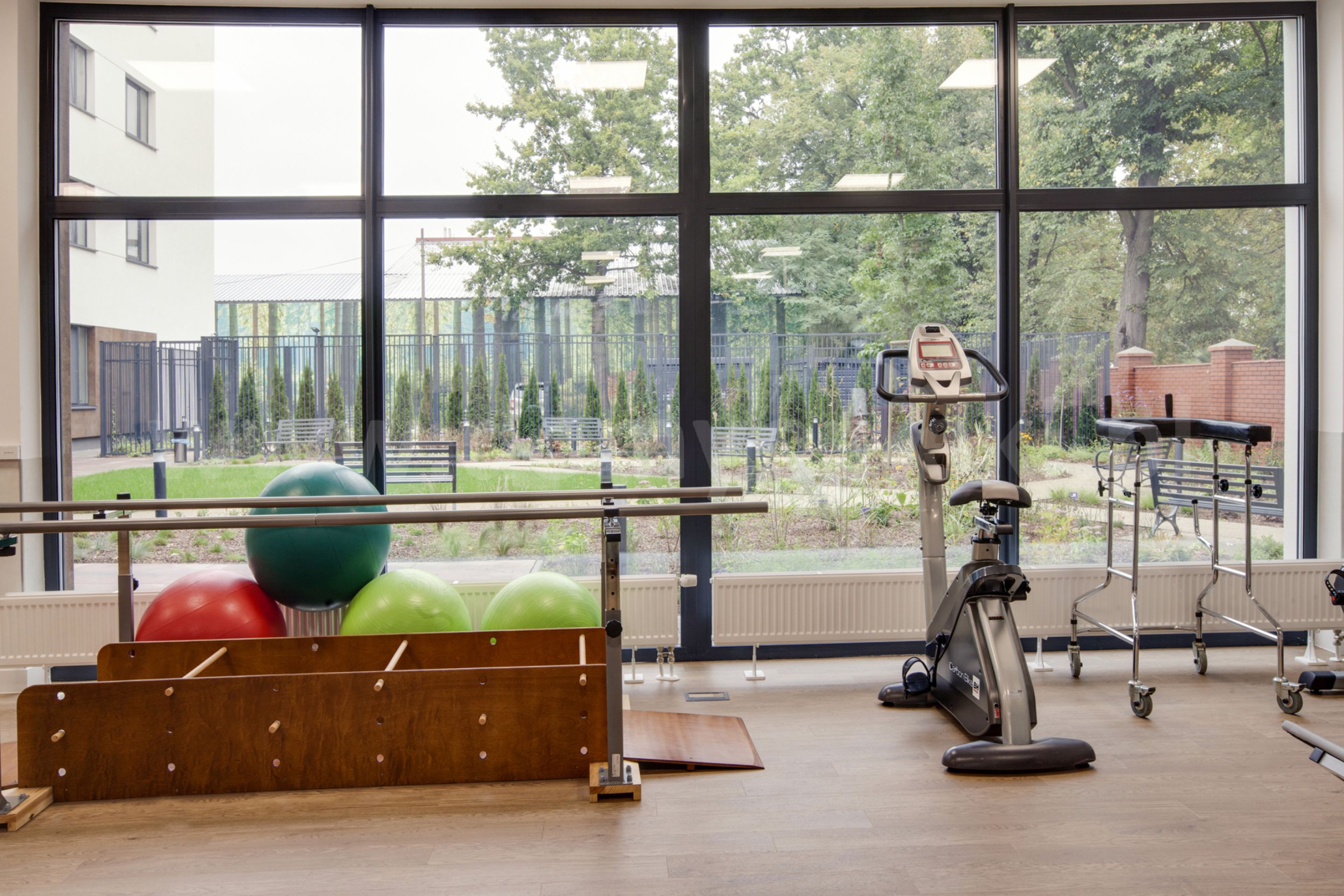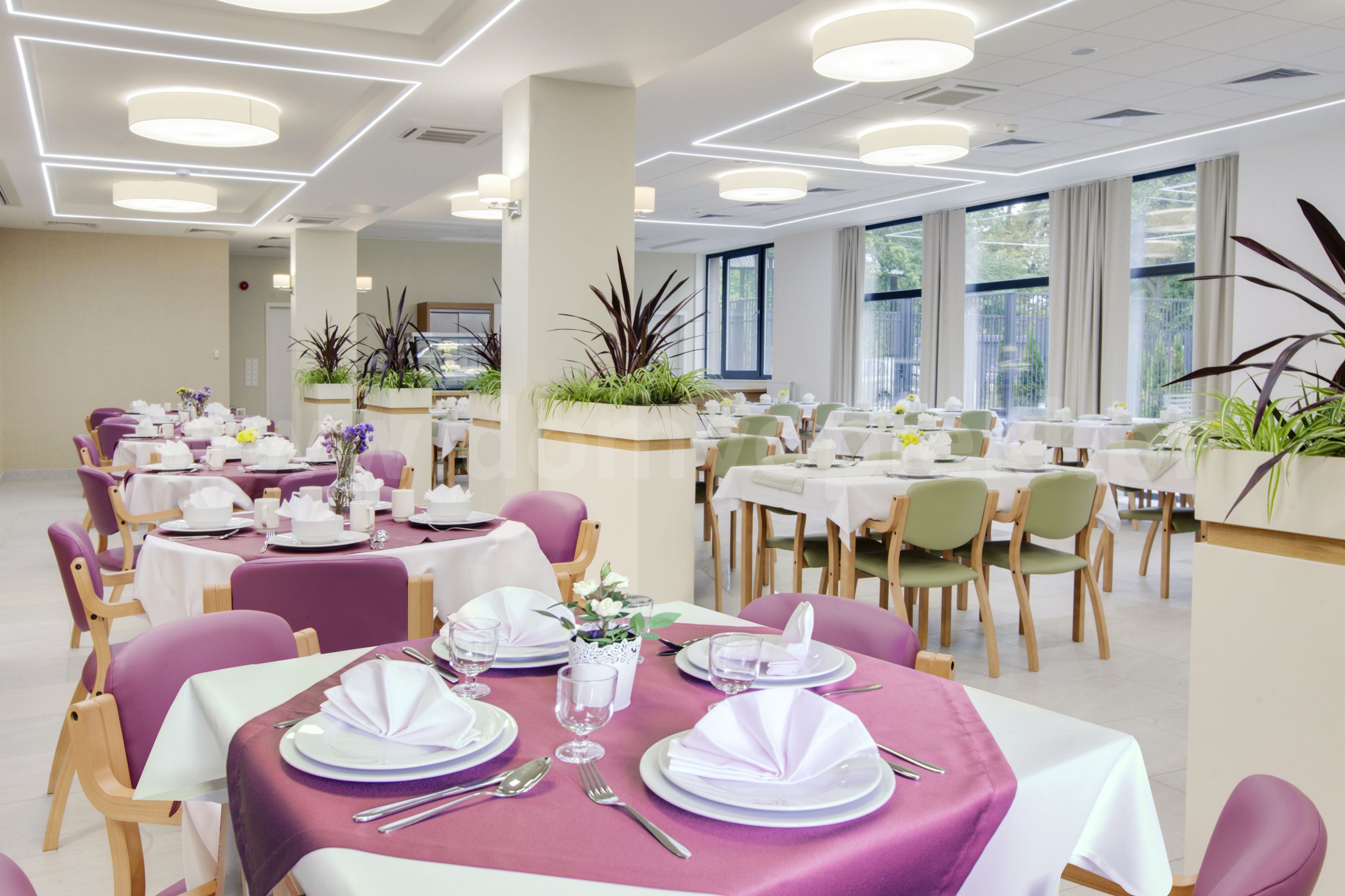 Udogodnienia: pokoje 1- i 2-osobowe z łazienką, sala terapeutyczna, jadalnia, biblioteka, ogród, kaplica, fryzjer, gabinet kosmetyczny, podziemny parking