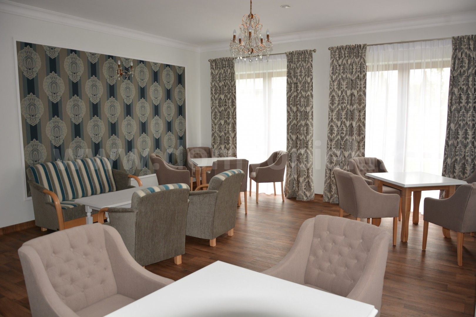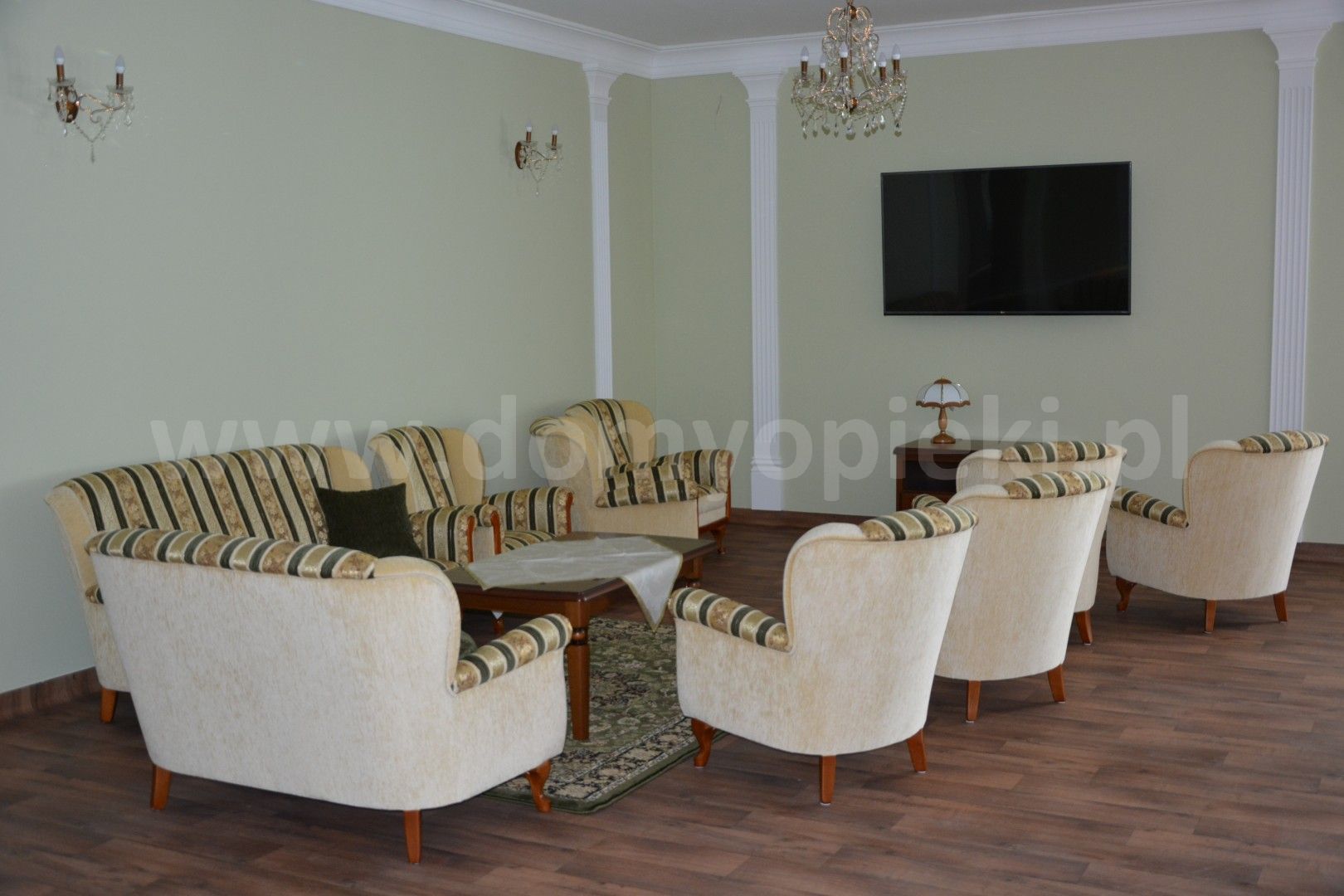 Udogodnienia: sala rehabilitacyjna, zabiegi fizykalne, masaże, programy aktywizacyjne (warsztaty, koncerty), kontakt ze zwierzętami, duży ogród