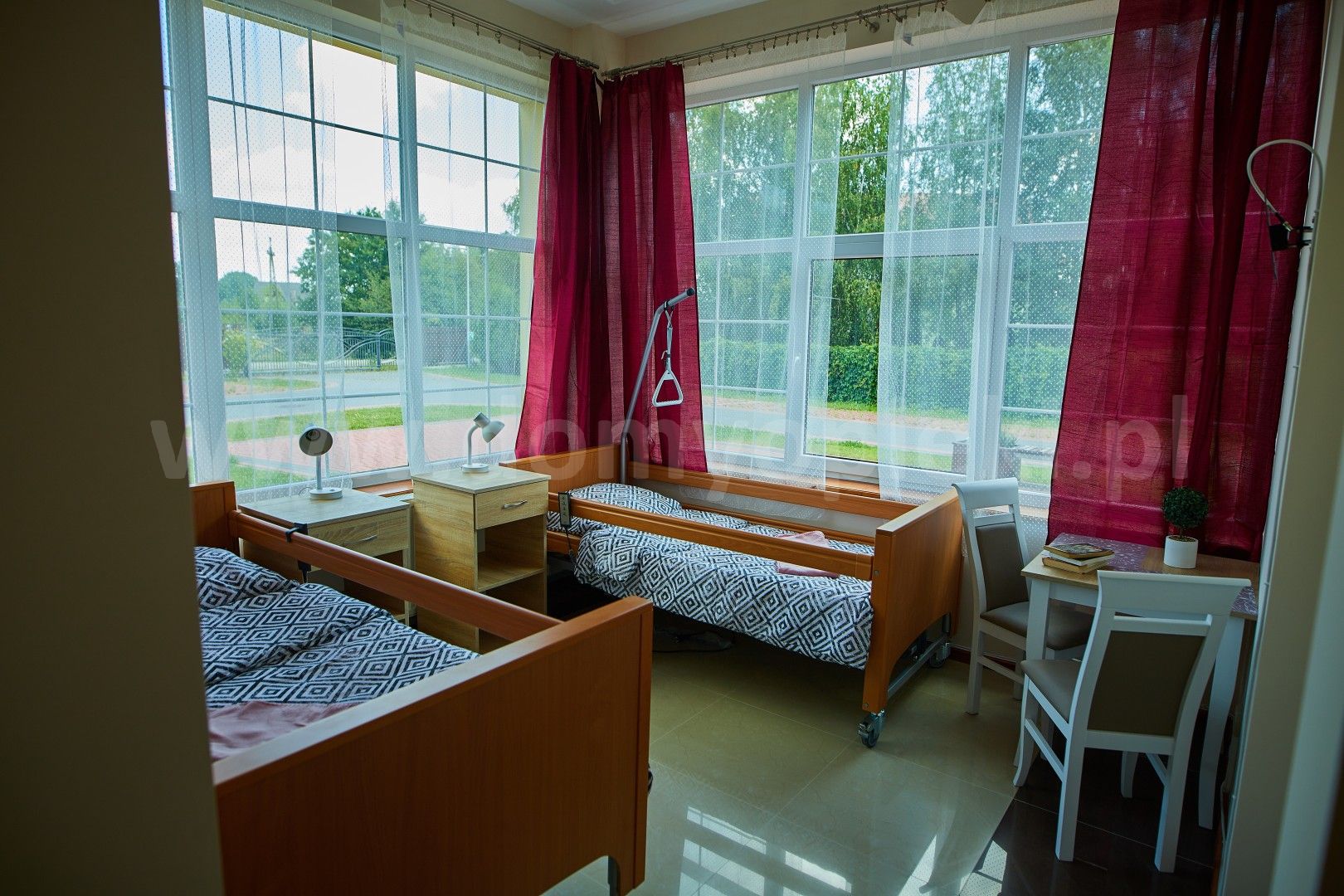 Udogodnienia: pokoje 1/2/3-osobowe, łóżka rehabilitacyjne, łazienki dla niepełnosprawnych, winda, przestronny parking, dziedziniec z ławeczkami, internet Wi‑Fi, biblioteka, opieka duszpasterska