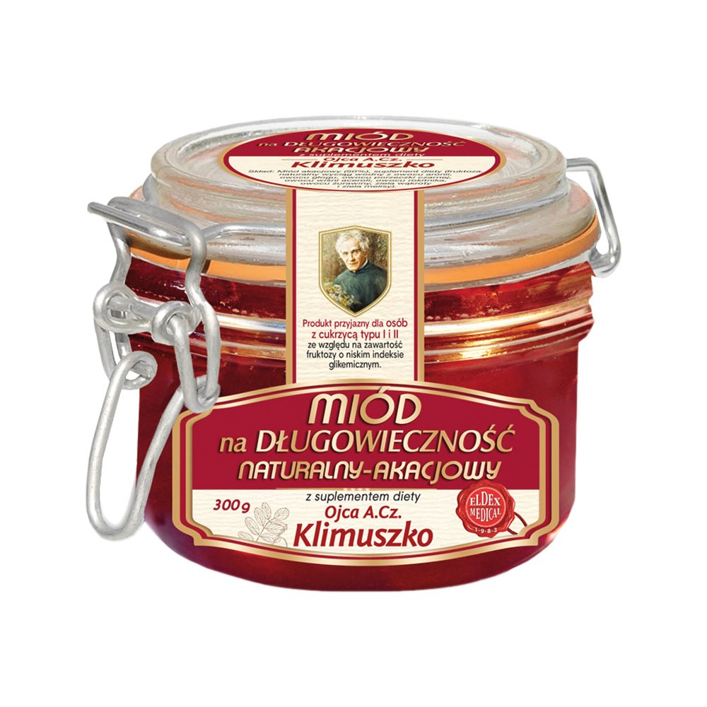 Miód akacjowy z ziołami doskonały na kanapki jak i do herbaty. Zawiera duże ilości naturalnej witaminy C, a także fruktozy i bioflawonoidów. W medycynie ludowej, był stosowany w problemach trawiennych (żołądek, dwunastnica). Substancje ziołowe zawarte w produkcie, pozwalają spowalniać procesy starzenia się skóry, np. występowanie zmarszczek, zwłaszcza u kobiet w okresie menopauzy. Pochodne kwasów triterpenowych, zawarte w ekstrakcie z ziela długowieczności (wąkrota) mają wpływ na stymulację procesów wygładzania i ujędrniania skóry (wzmożenie produkcji kolagenu i elastyny), a także na łagodzenie objawów cellulitu.