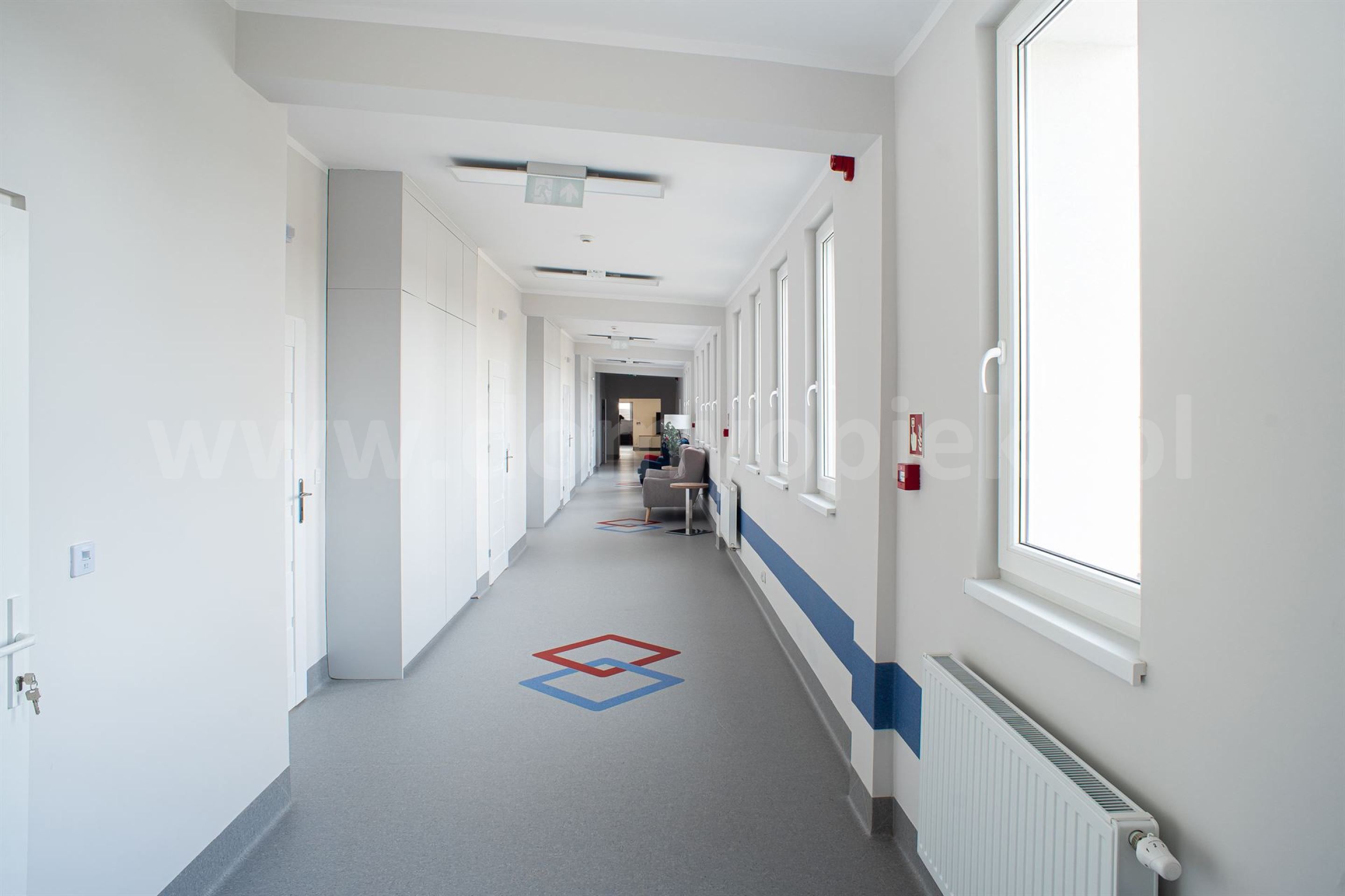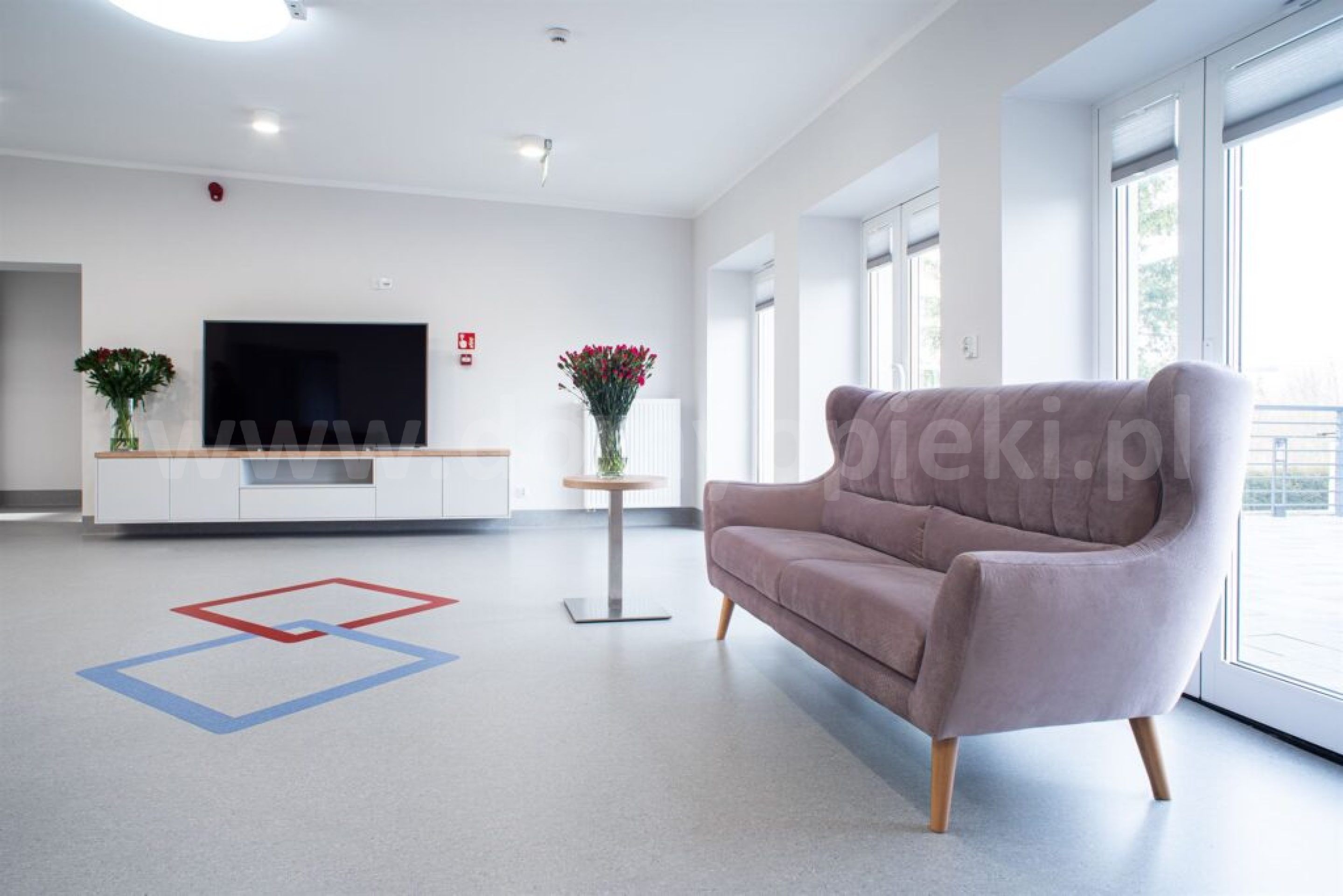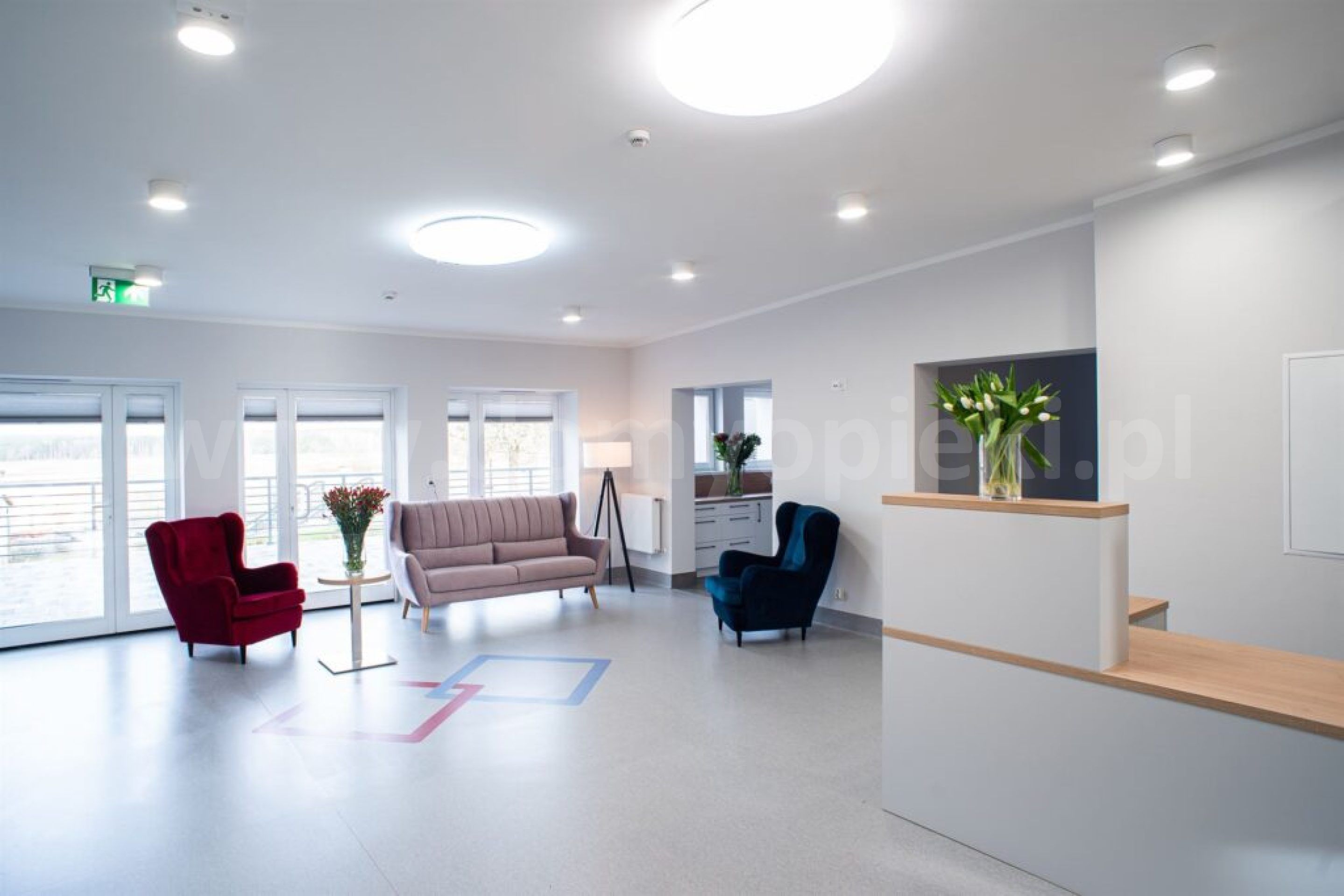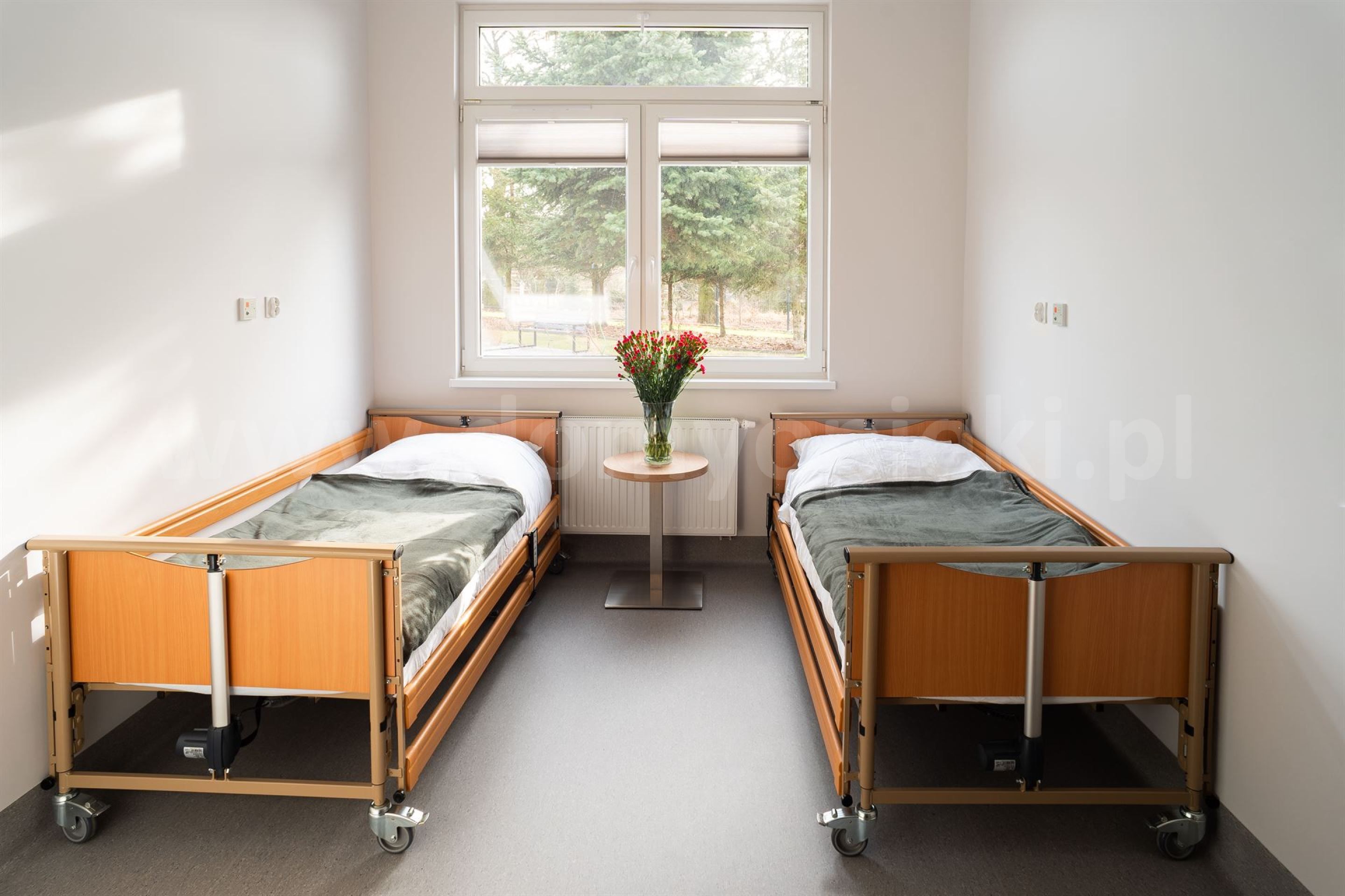 Udogodnienia: pokoje 2‑ i 4‑osobowe z łazienkami; specjalistyczne łóżka; system przyzywowy SOS; telewizja; możliwość wyposażenia pokoju własnymi meblami; budynek bez barier architektonicznych