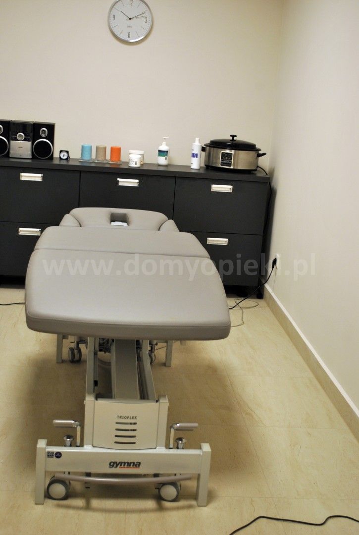 Dom przywiązuje ogromną wagę do szeroko rozwiniętej rehabilitacji. W ofercie nie brakuje kąpieli leczniczych, kinezyterapii, masaży, fizykoterapii, termoterapii i innych.