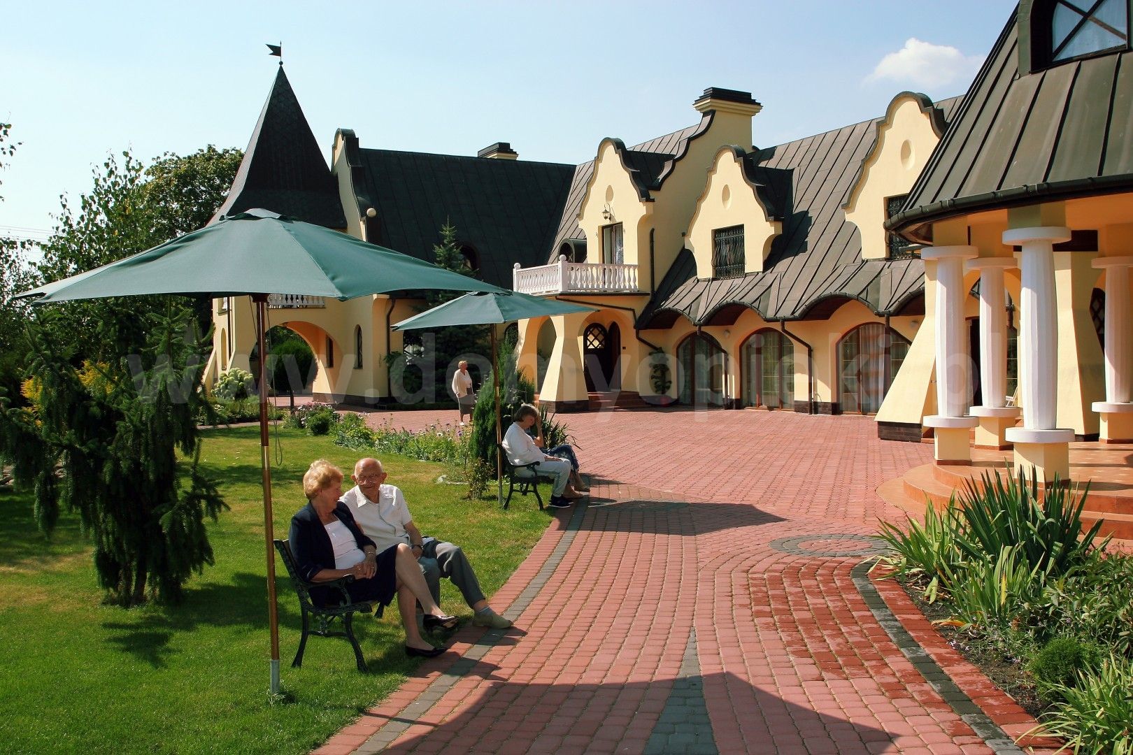 Udogodnienia: pokoje 1-/2-/3-osobowe z łazienkami, system przywoławczy, telewizja kablowa, telefon, sale kominkowa i fortepianowa, biblioteka, gabinety lekarskie i rehabilitacyjne, usługi fryzjersko-kosmetyczne