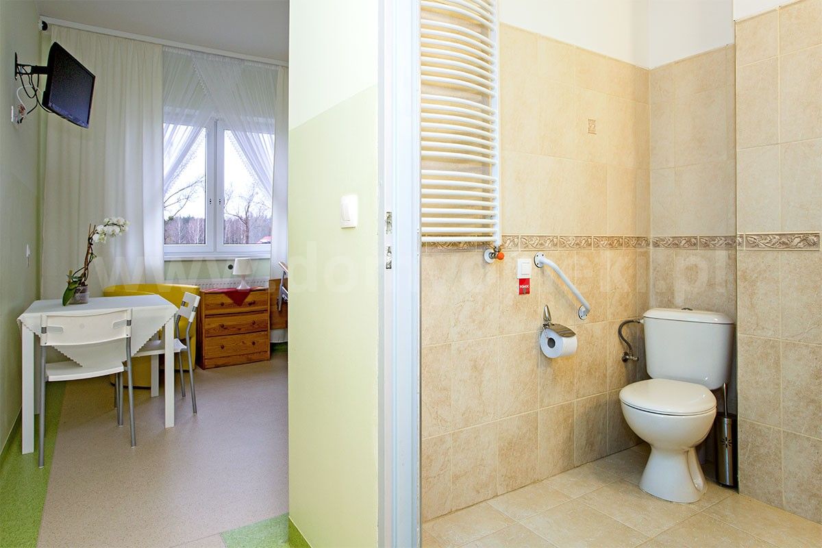 Świetny ośrodek dla osób potrzebujących pomocy drugiej osoby ! Mój wuj jeździ na wózku a ośrodek zapewnia mu swobodę poruszania się są piękne szerokie korytarze z barierkami winda szerokie pokoje i łazienki a co najważniejsze w łazienkach prysznic nie jest zabudowany co pozwala swobodnie mu się kapać. Nie narzeka na nic, bardzo chwali sobie cały ośrodek jak i opiekę Pań które nad nim czuwają. Polecam jak dla mnie ośrodek 5/5 !