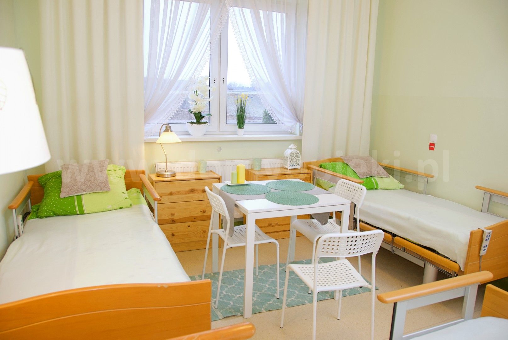 Zakres opieki: opieka całodobowa, pielęgniarska i medyczna, wizyty lekarza internisty, podawanie leków, profilaktyka przeciwodleżynowa, rehabilitacja i terapie